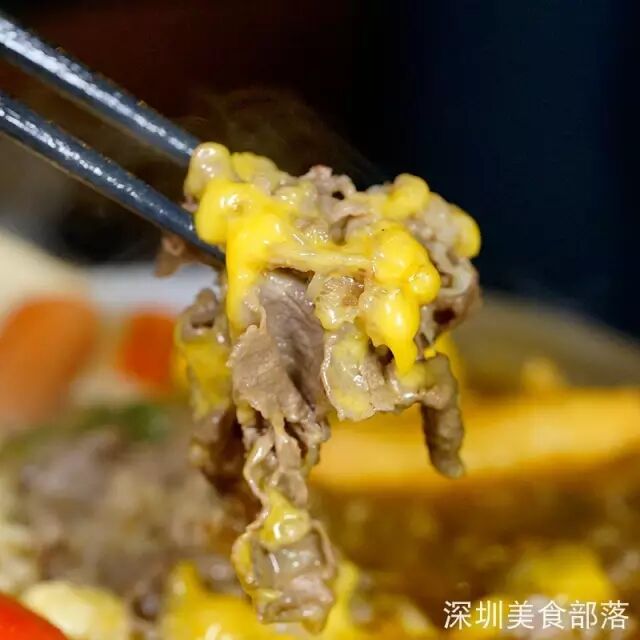 等芝士完全融于湯后,伴著食材一起慢慢融化,味道層次又豐富了不少。我最喜歡芝士卷著牛肉片吃,芝士味很濃郁,爽口不膩!